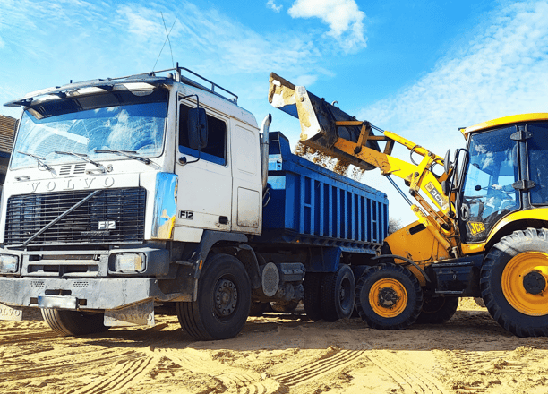 Medžiagos atvežamos arba atliekos išvežamos operatyviai. Vairuotojas gali padėti pakrauti arba iškrauti krovinį.